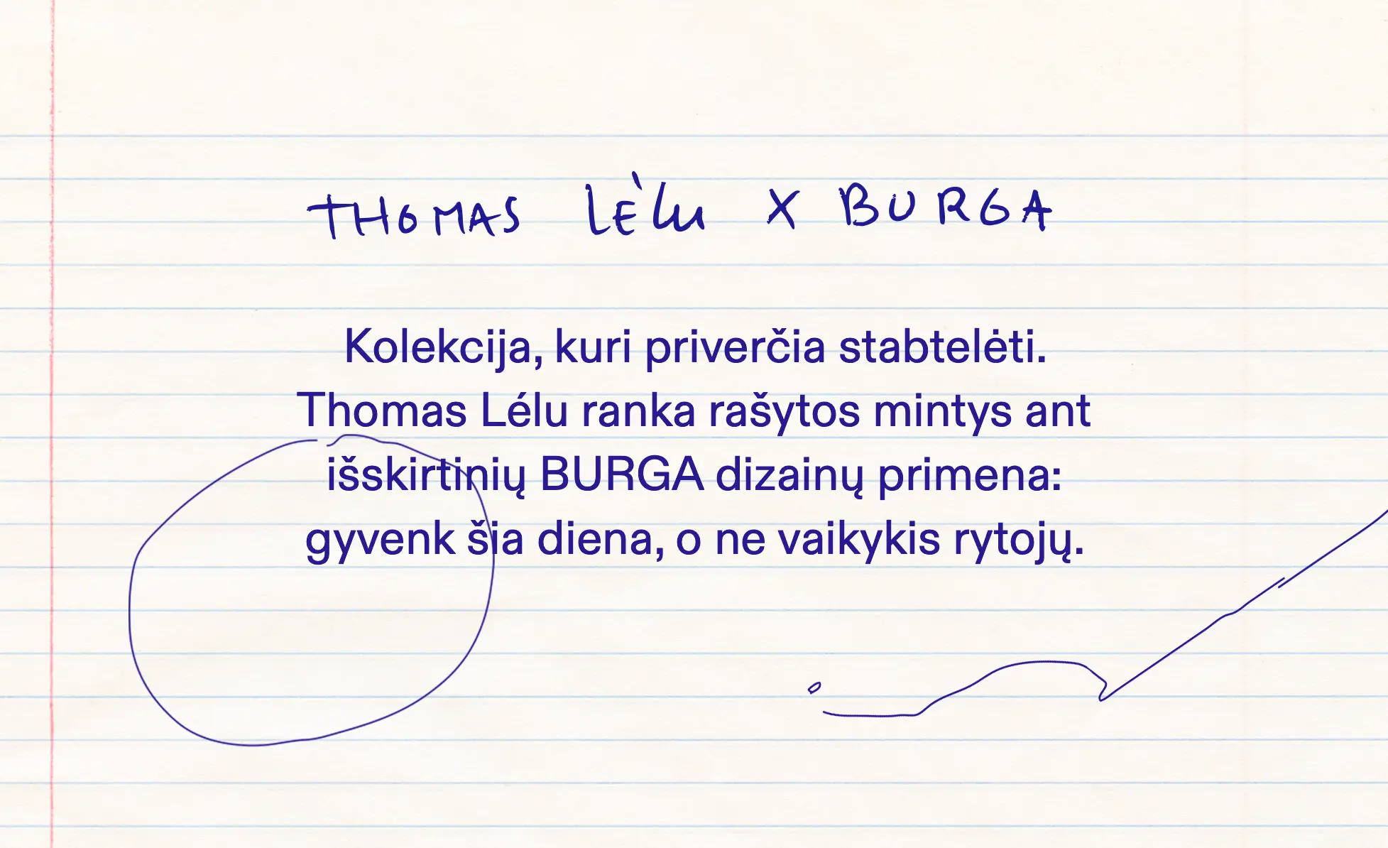 Prancūzų menininkas, fotografas ir rašytojas Thomas Lélu derina šiuolaikinį meną, madą ir popkultūrą. Jo darbai buvo eksponuojami Palais de Tokyo, Fondation Cartier ir Musée d'Art Moderne de Paris, o pats kūrėjas drąsiai laužo nusistovėjusias normas, kurdamas pasaulį, kuriame humoras flirtuoja su kritika ir vizualiniu žaismu. Modernus, švelnus, bet kartu ir kandus, jis kuria savitą kalbą, kurioje grafiška elegancija susilieja su asmeniškomis refleksijomis. Tiek jo knygose, tiek vizualiniuose darbuose kasdienybė perpasakojama su ironija, lengva pašaipa ir vizualine poezija. Šiandien Lélu yra vienas ryškiausių šiuolaikinio vizualinio meno vardų, jo darbais dalijosi Kelly Rutherford, Kendall Jenner ir Emily Ratajkowski.