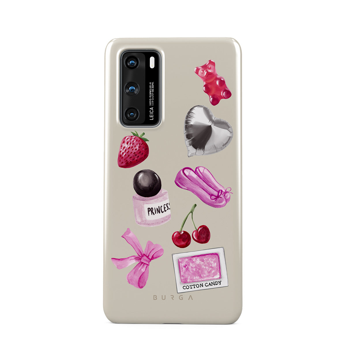 Dizaino ypatybės: rožinis kaspinas, sidabrinis širdelės formos balionas, kvepalų buteliukas, braškė, vyšnia, rožinės baleto šlepetės, cukraus vatos lipdukas, rožinis guminis meškiukas