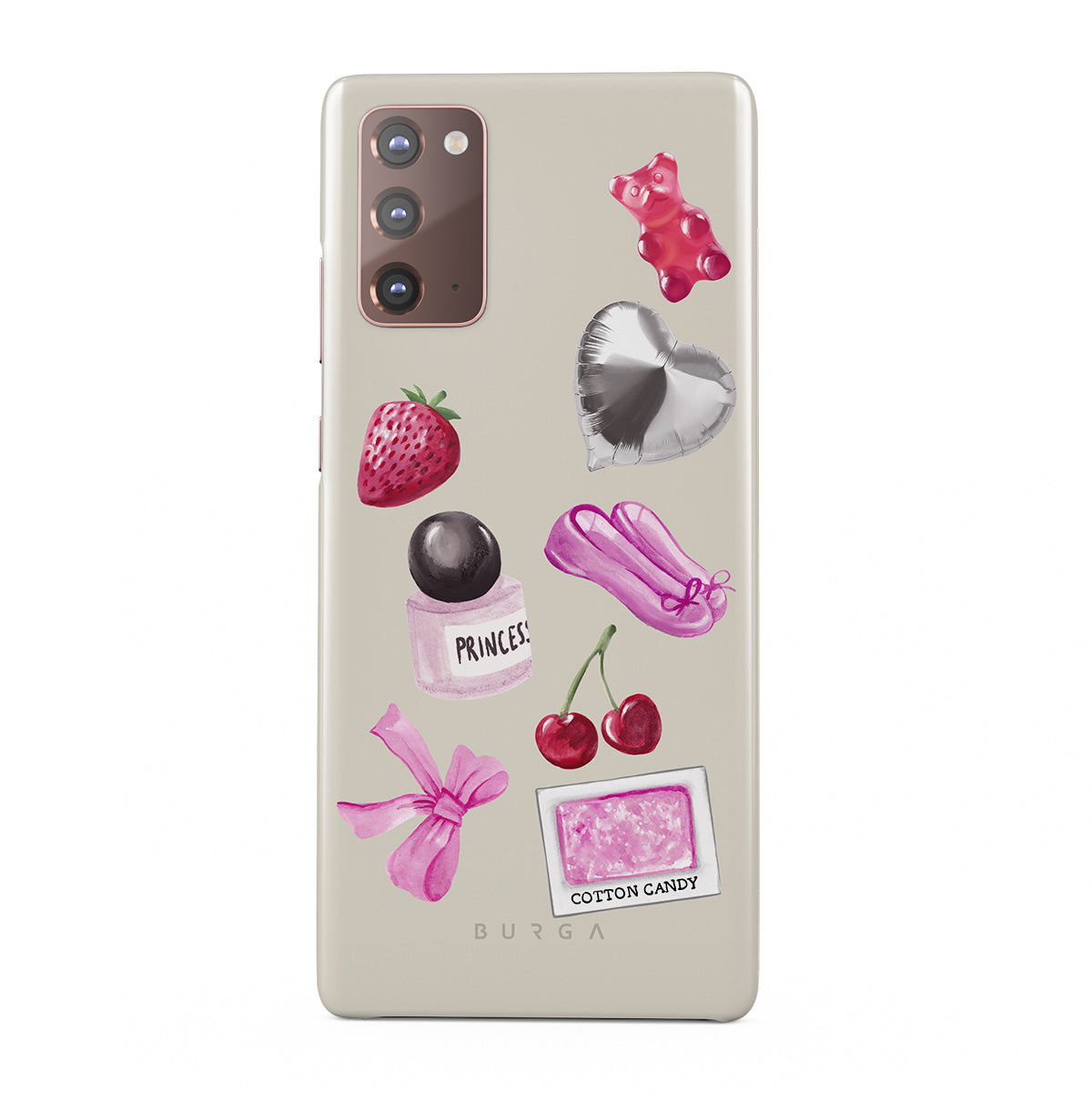 Dizaino ypatybės: rožinis kaspinas, sidabrinis širdelės formos balionas, kvepalų buteliukas, braškė, vyšnia, rožinės baleto šlepetės, cukraus vatos lipdukas, rožinis guminis meškiukas