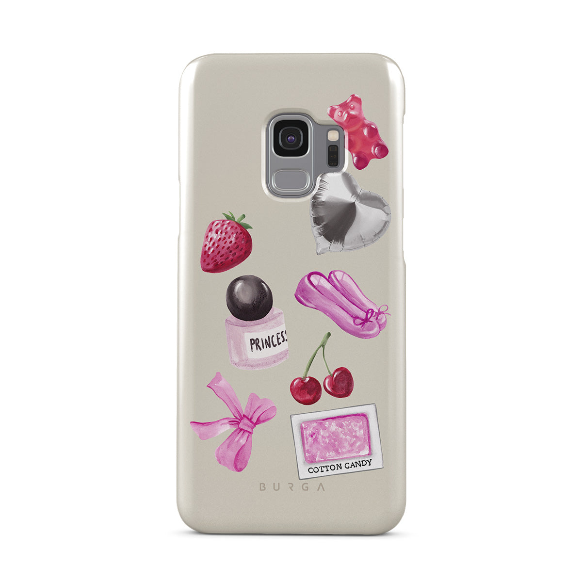 Dizaino ypatybės: rožinis kaspinas, sidabrinis širdelės formos balionas, kvepalų buteliukas, braškė, vyšnia, rožinės baleto šlepetės, cukraus vatos lipdukas, rožinis guminis meškiukas
