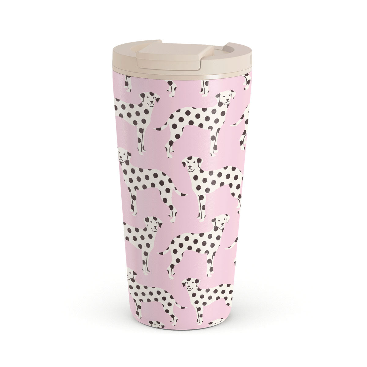 Dizaino ypatybės: dalmatinai, šviesiai rožinis fonas
