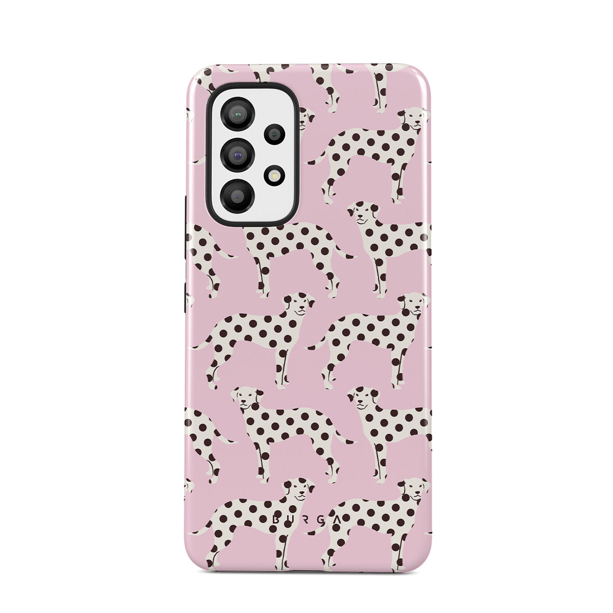 Dizaino ypatybės: dalmatinai, šviesiai rožinis fonas