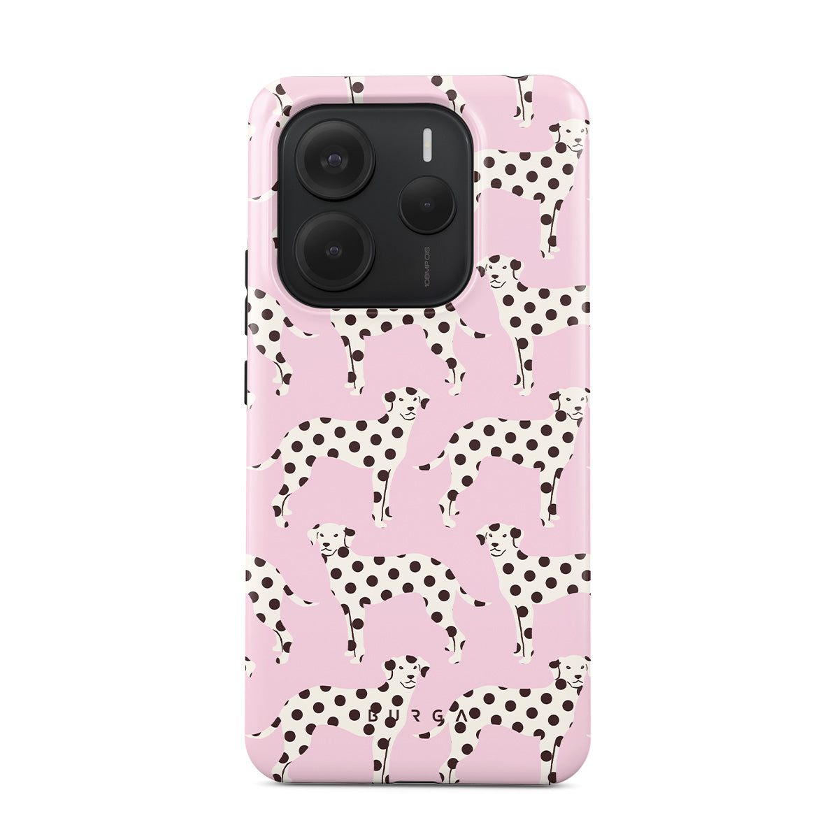 Dizaino ypatybės: dalmatinai, šviesiai rožinis fonas