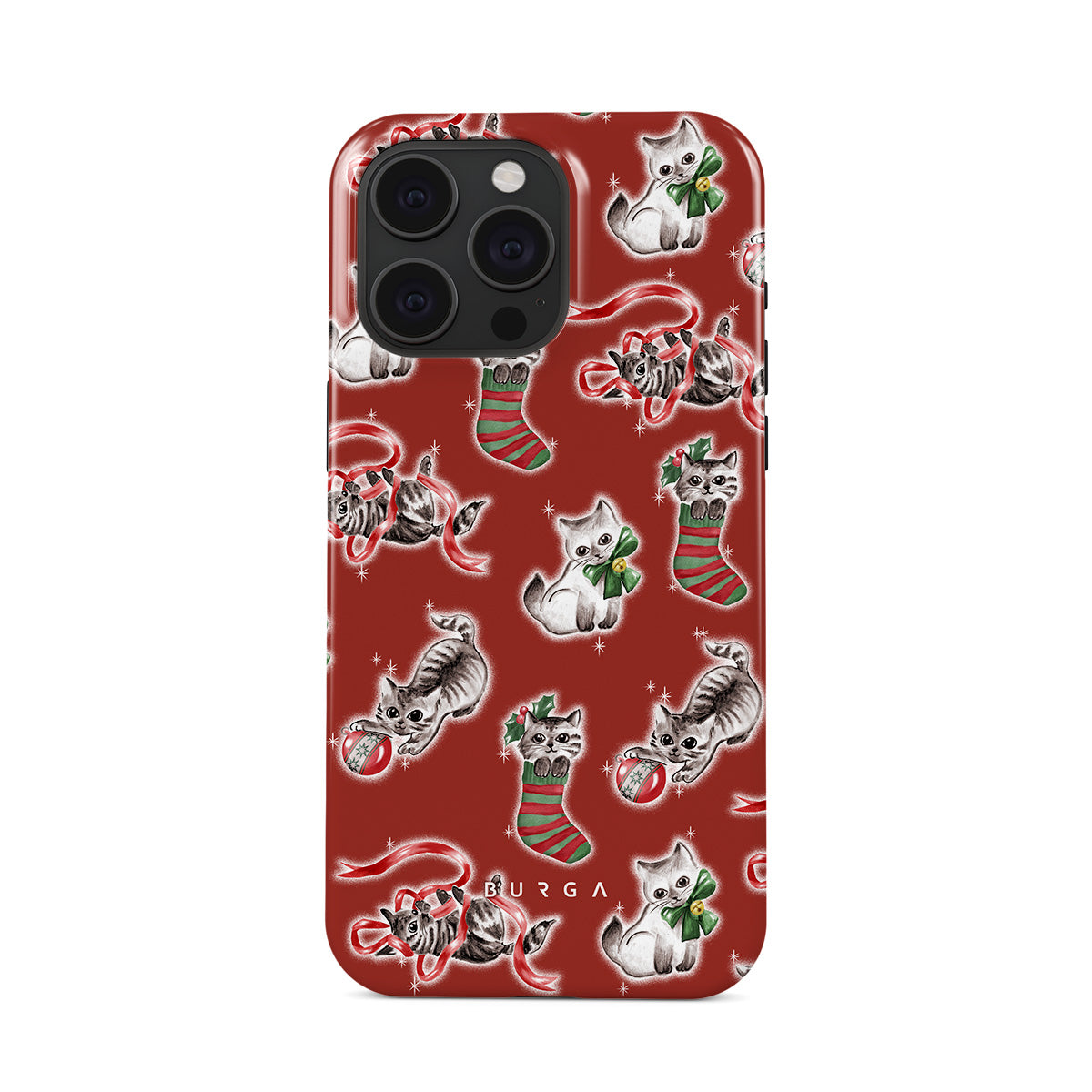 Dizaino ypatybės: katės, Kalėdinės kojinės, kačiukai, raudonos ir žalios juostelės raštas, žaismingos katės, Kalėdiniai žaisliukai