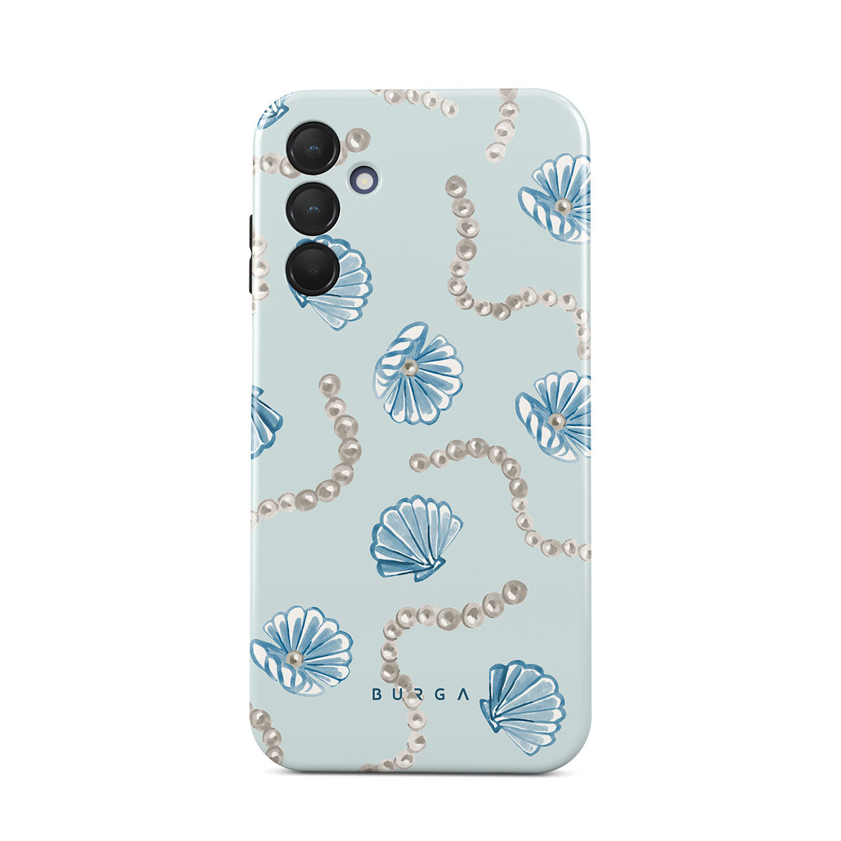 Dizaino ypatybės: perlai, geldelės, šviesiai mėlynas fonas, jūros elementai