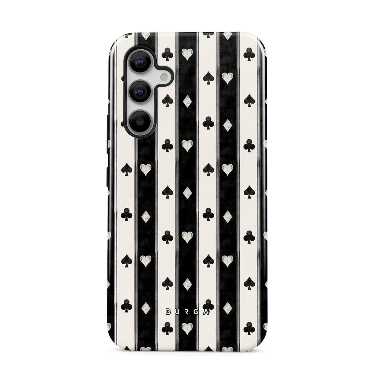 Dizaino ypatybės: juodos ir baltos juostelės, širdelės, žaidimo kortų deriniai, vintažinis stilius