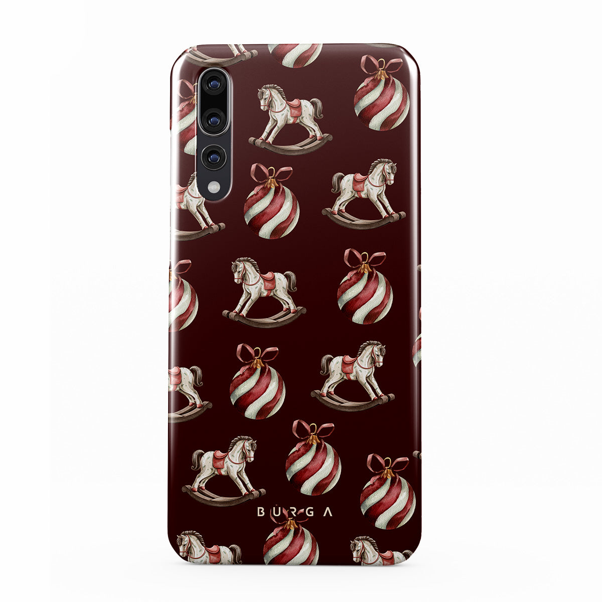 Dizaino ypatybės: supamieji arkliukai, žaisliukai, raudona spalva, kalėdinis raštas.