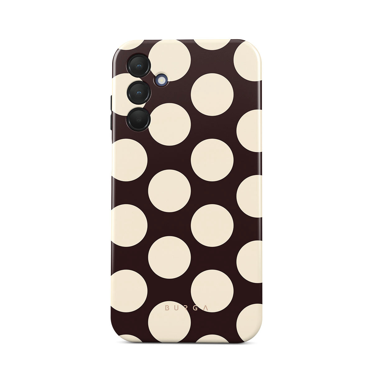 Dizaino ypatybės: dideli kreminės spalvos taškai, tamsus fonas