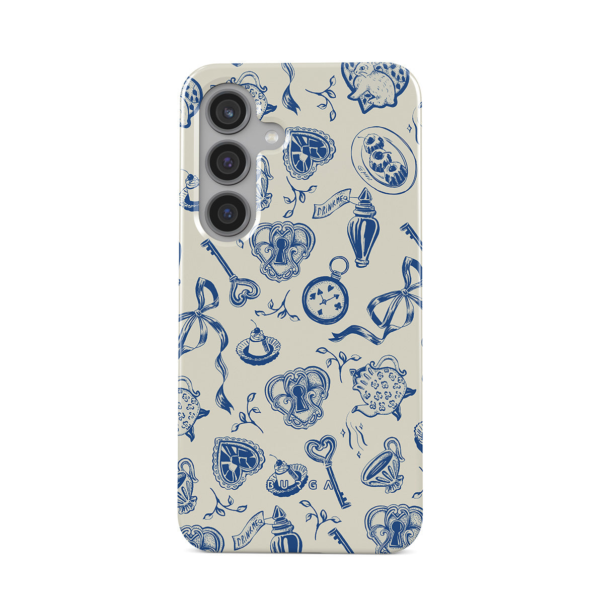 Dizaino ypatybės: puodeliai, arbatinukai, kišeniniai laikrodžiai, raktas, širdelės, keramika, mėlynos ir baltos spalvos raštas