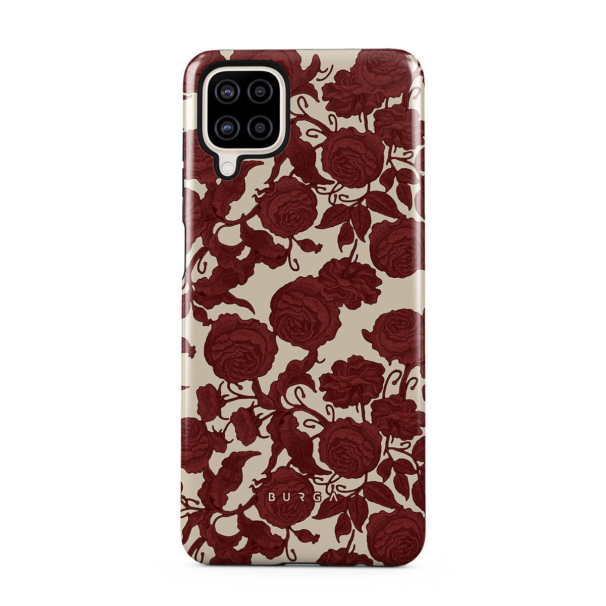 Dizaino ypatybės: tamsiai raudonos rožės, įmantrus gėlių raštas, vintažinis raštas