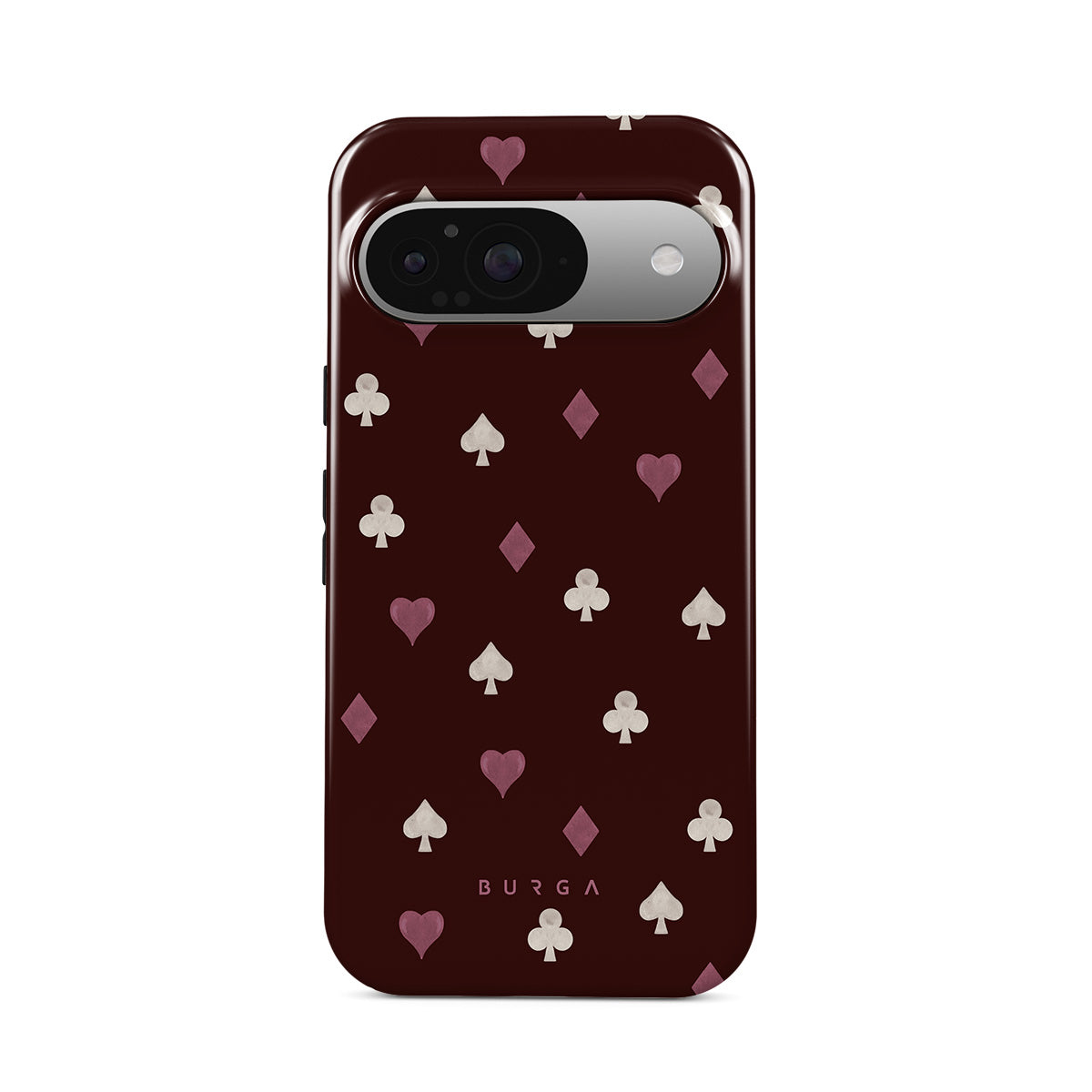 Dizaino ypatybės: žaidimo kortų deriniai, širdys, pikai, deimantai, kryžiai, bordo spalvos fonas