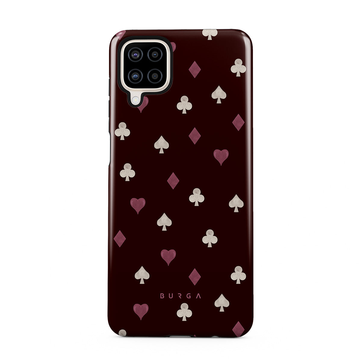 Dizaino ypatybės: žaidimo kortų deriniai, širdys, pikai, deimantai, kryžiai, bordo spalvos fonas