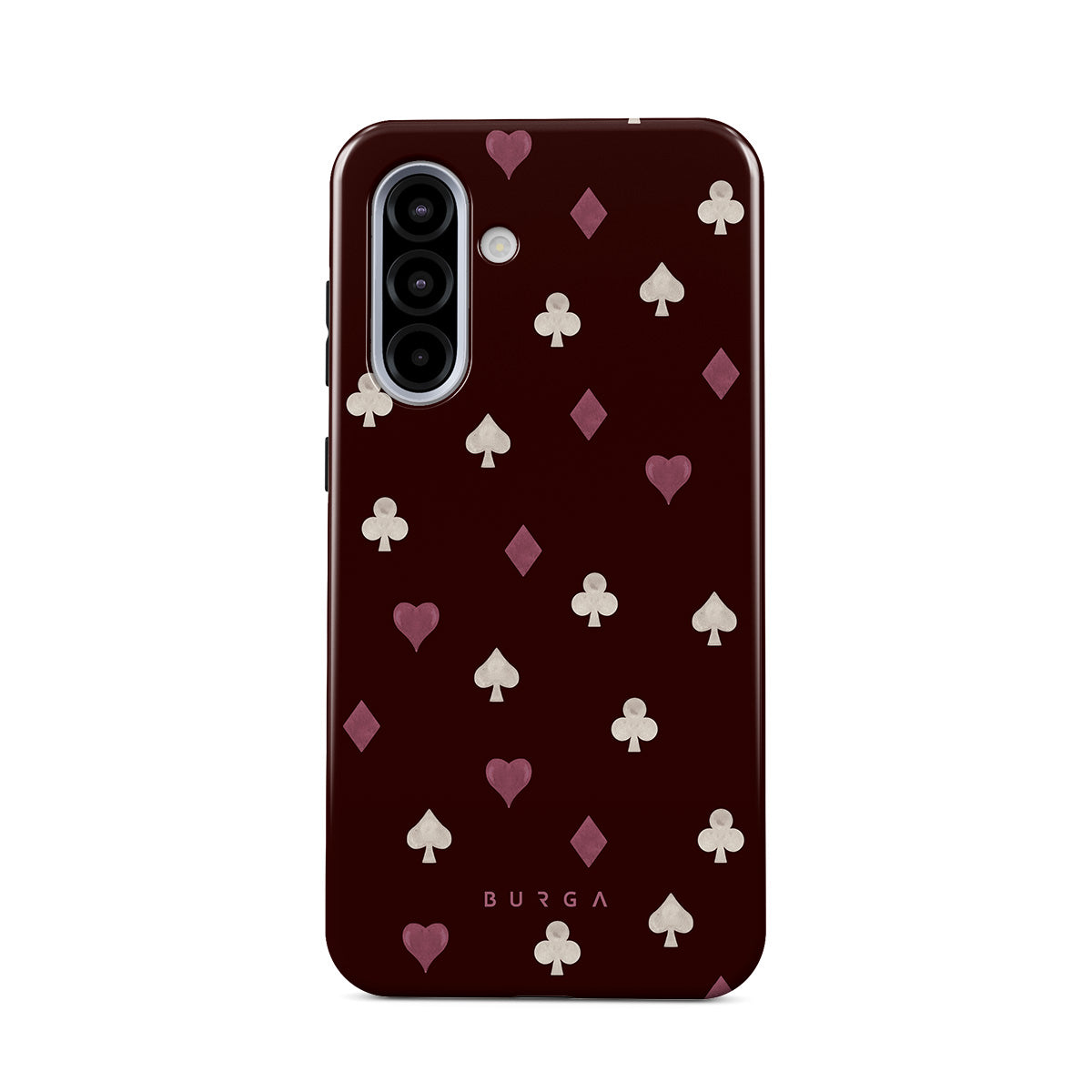 Dizaino ypatybės: žaidimo kortų deriniai, širdys, pikai, deimantai, kryžiai, bordo spalvos fonas