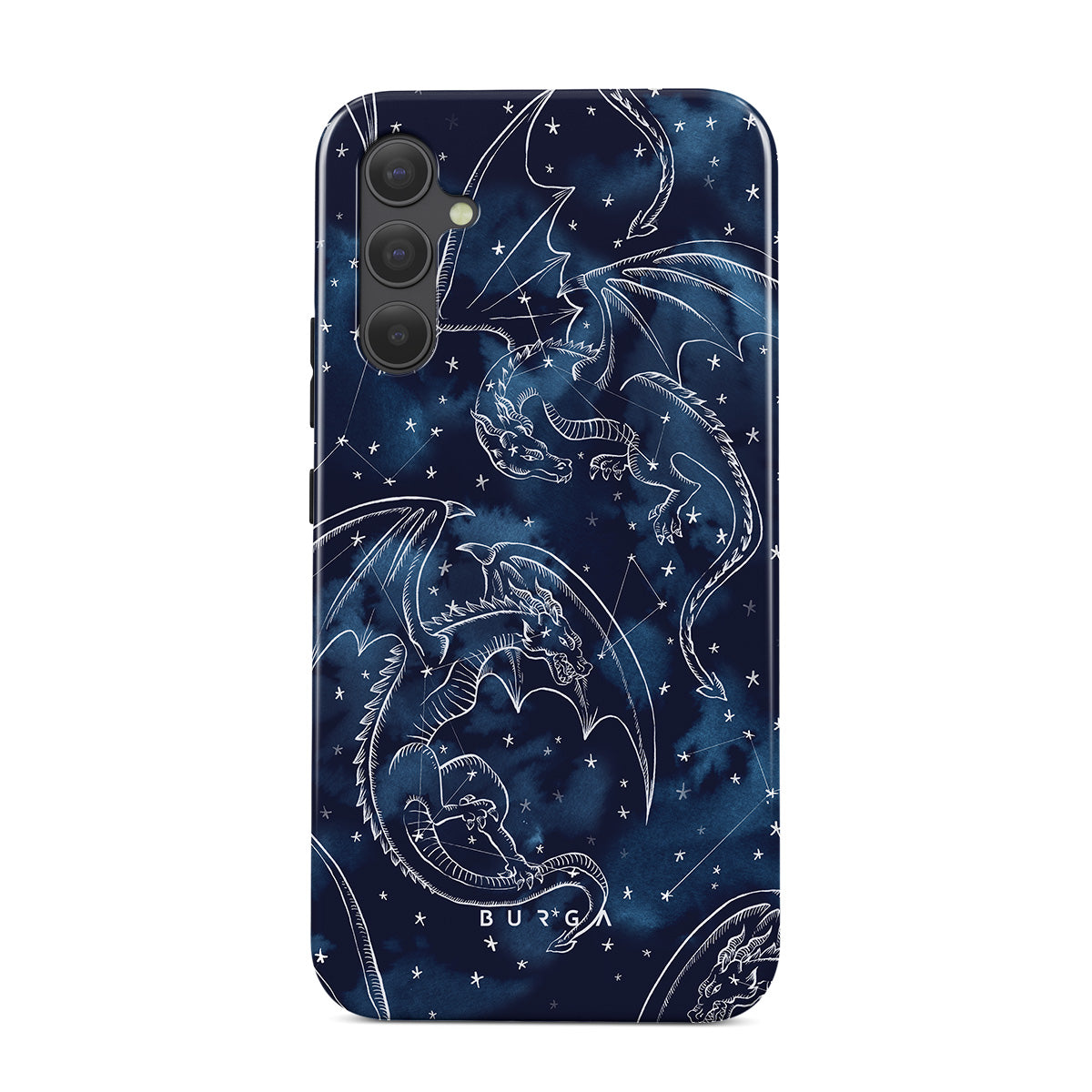 Dizaino ypatybės: drakonai, žvaigždės, žvaigždynai, tamsiai mėlynas dangus