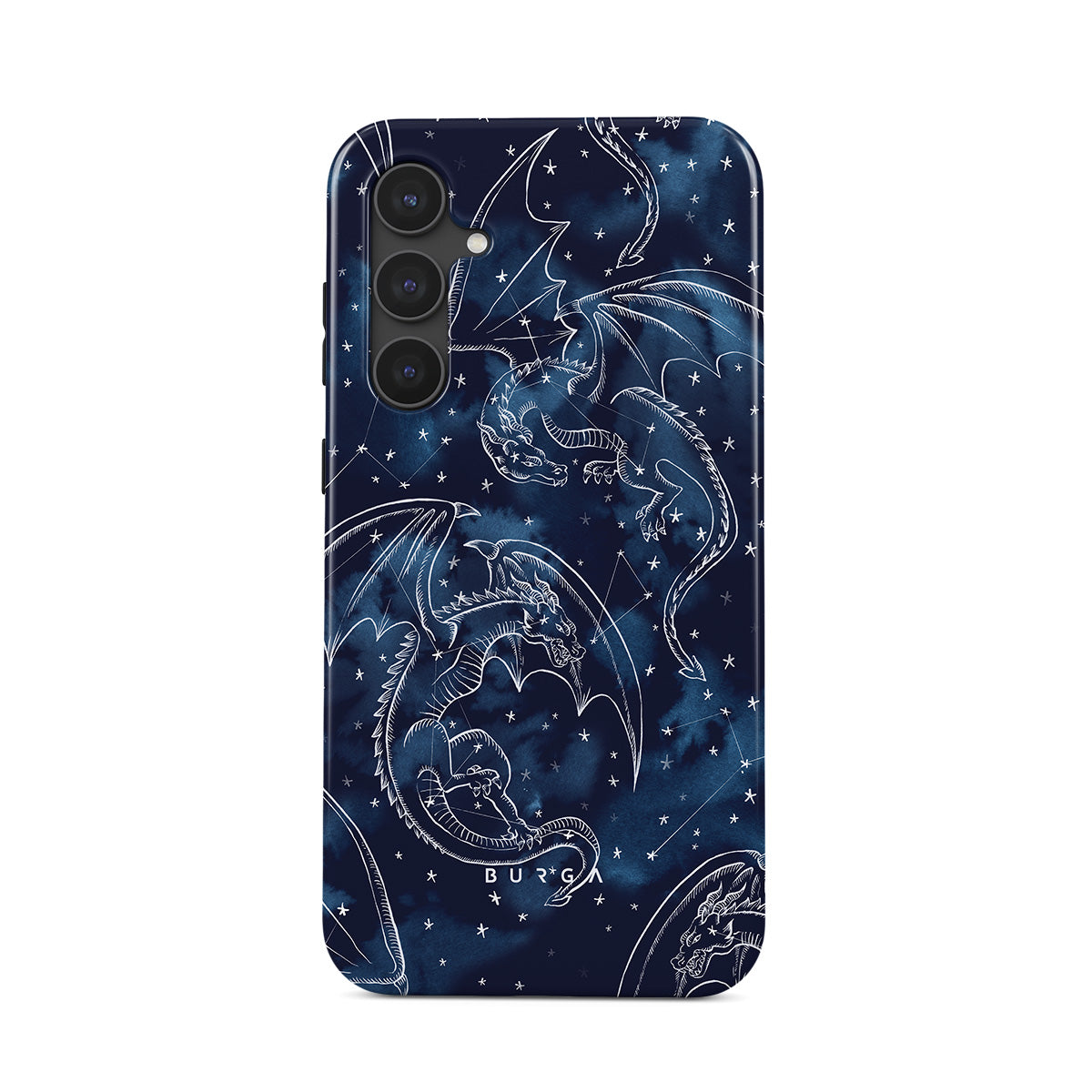 Dizaino ypatybės: drakonai, žvaigždės, žvaigždynai, tamsiai mėlynas dangus